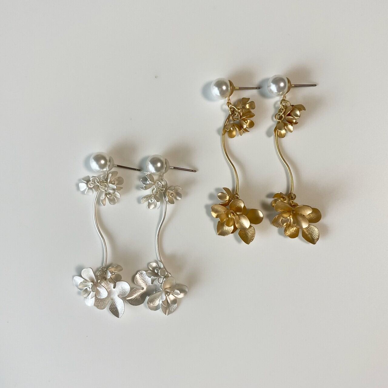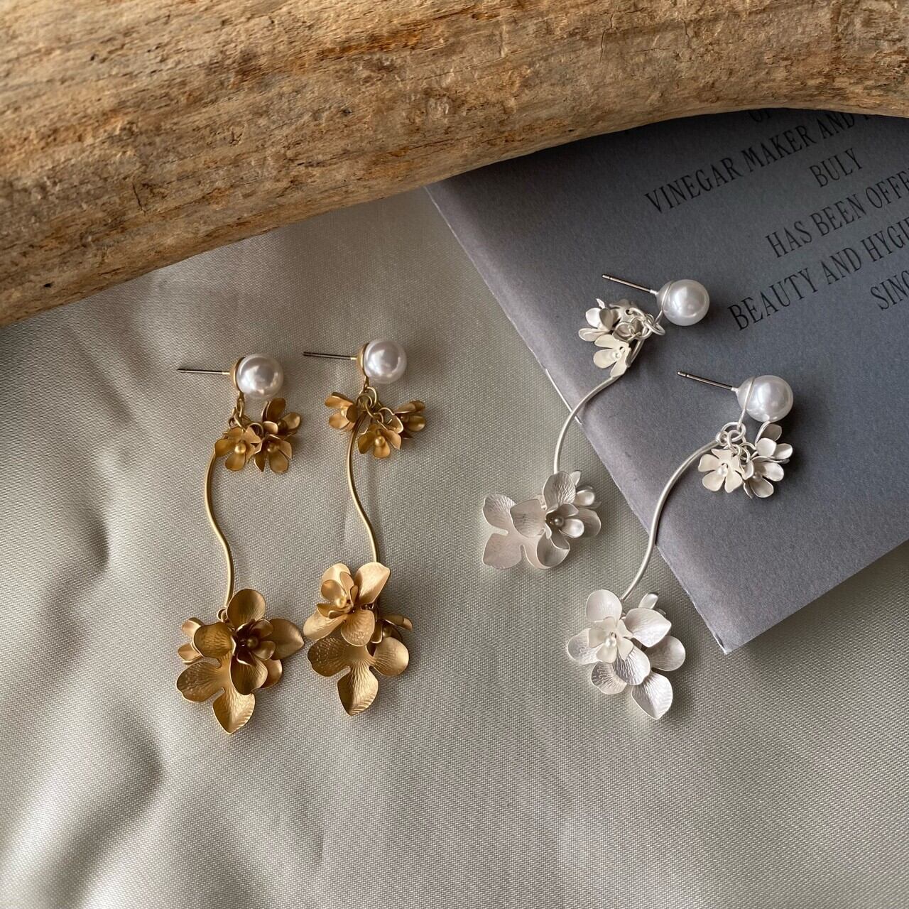 マットメタルフラワーパールピアス