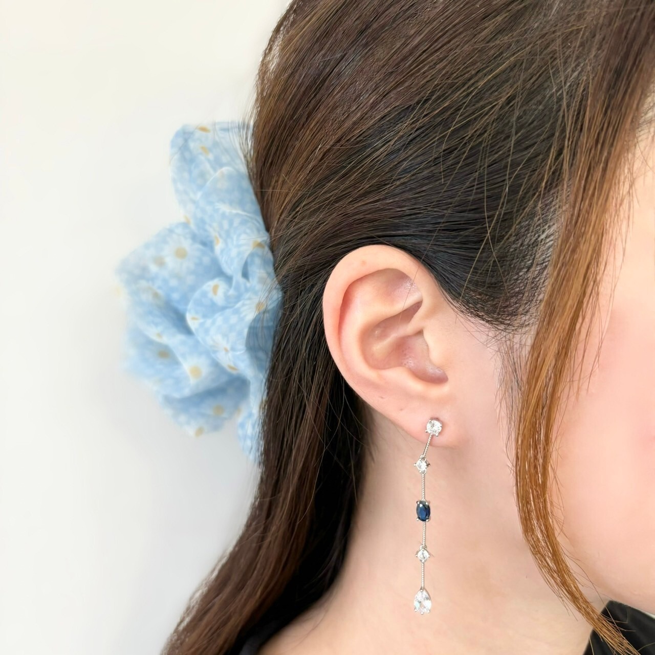 1粒カラーロングビジューピアス